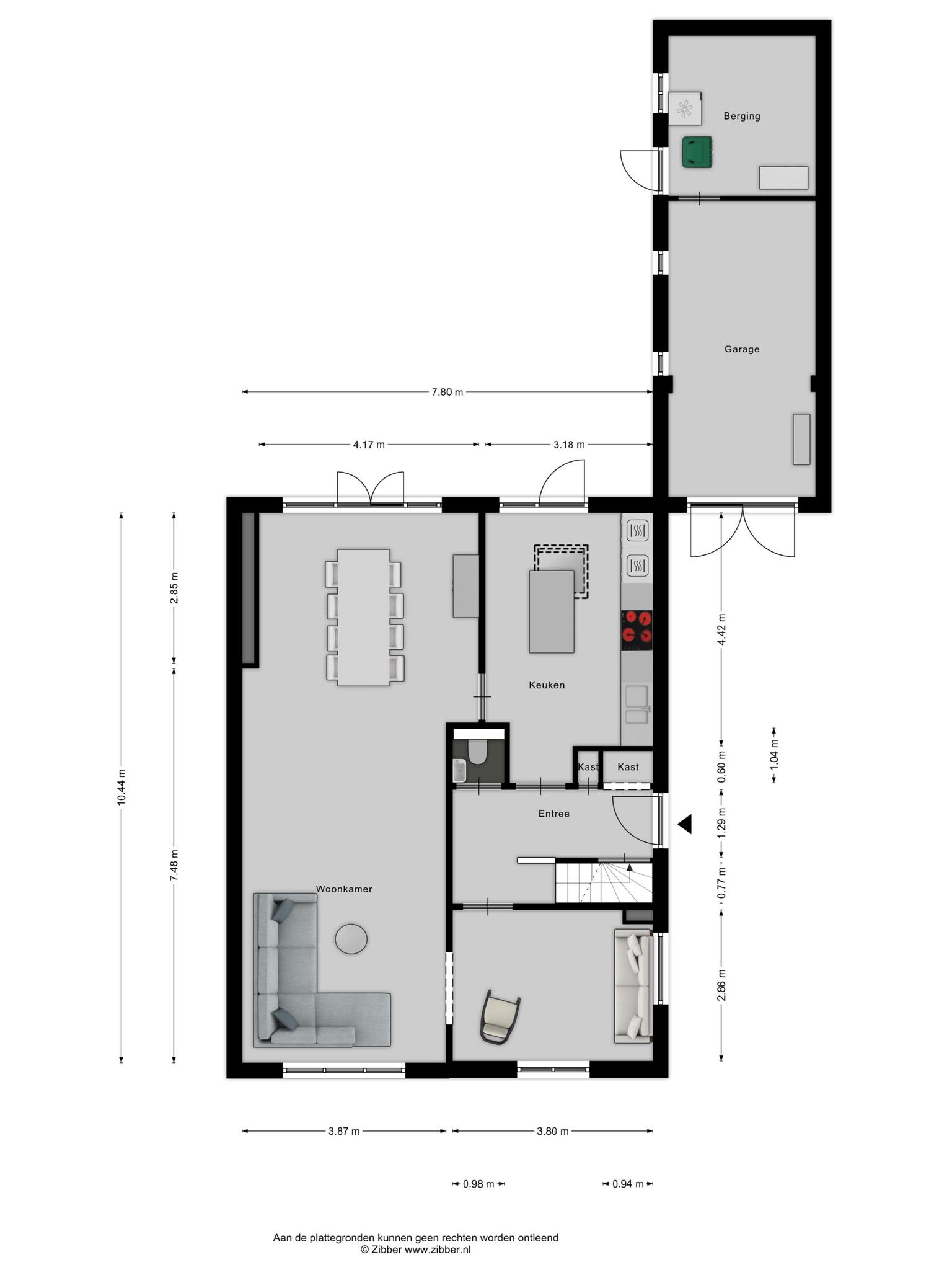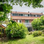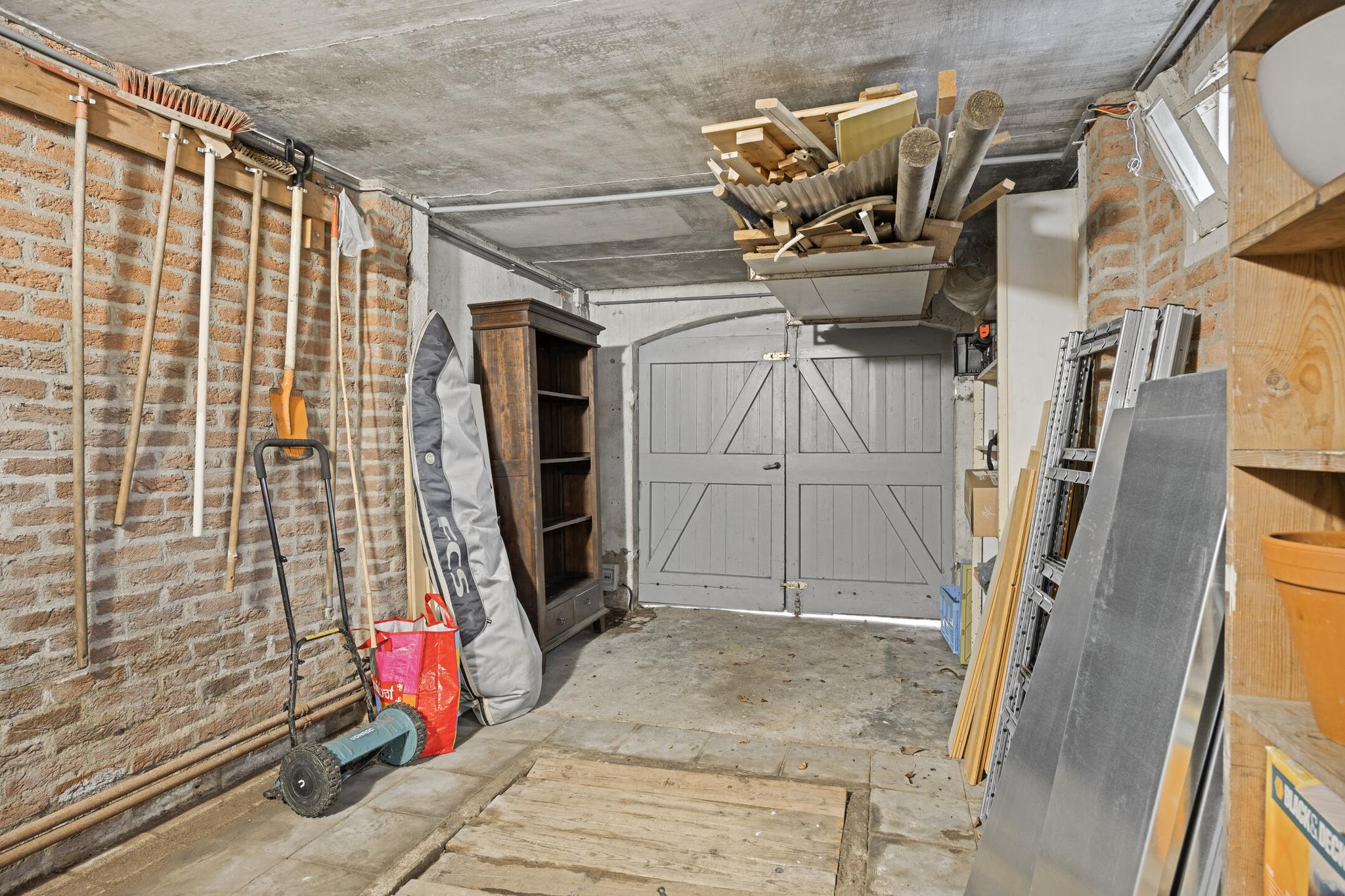 Grenzend aan het terras en aan de oprit bevinden zich de zeer ruime garage en aparte berging, met elektriciteit, die genoeg ruimte bieden voor opslag, klussen of hobby’s, en het parkeren van fietsen.