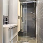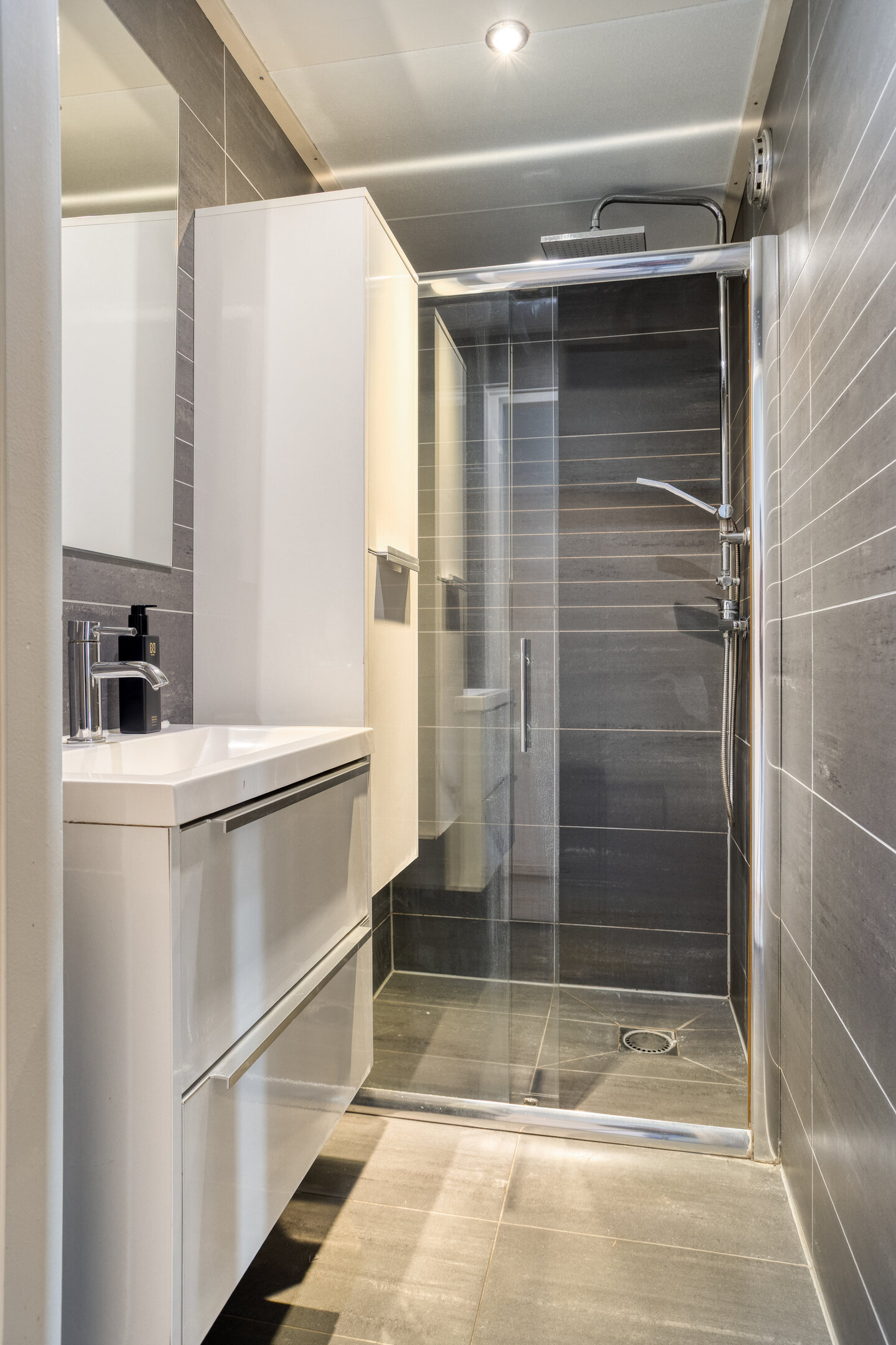 De grootste slaapkamer, tweede slaapkamer en de badkamer is volledig betegeld en voorzien van een douche en wastafel. Het toilet is separaat.