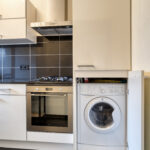 • Nette keuken met gaskookplaat, ingebouwde koelkast en wasmachineaansluiting