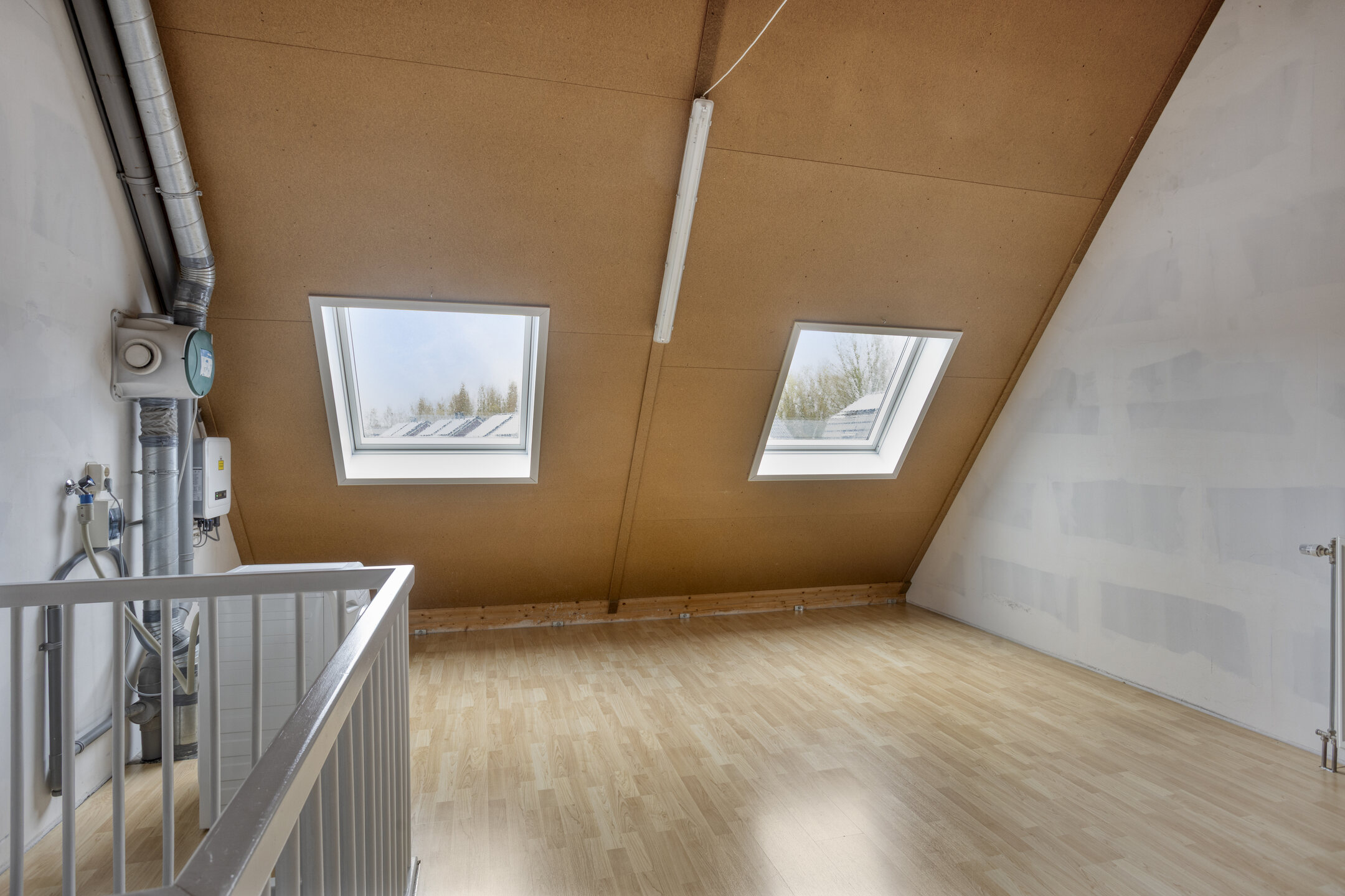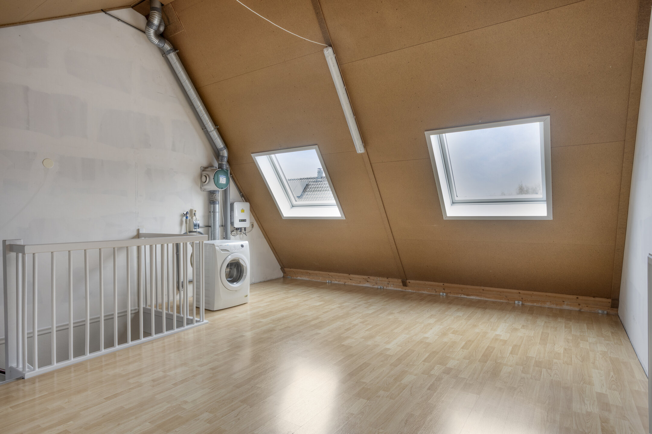 De tweede verdieping bestaat uit een ruime open verdieping met de aansluiting voor de wasmachine. Deze verdieping biedt volop mogelijkheden: je kunt hier eenvoudig één grote slaapkamer, een werkruimte of zelfs twee extra slaapkamers realiseren.