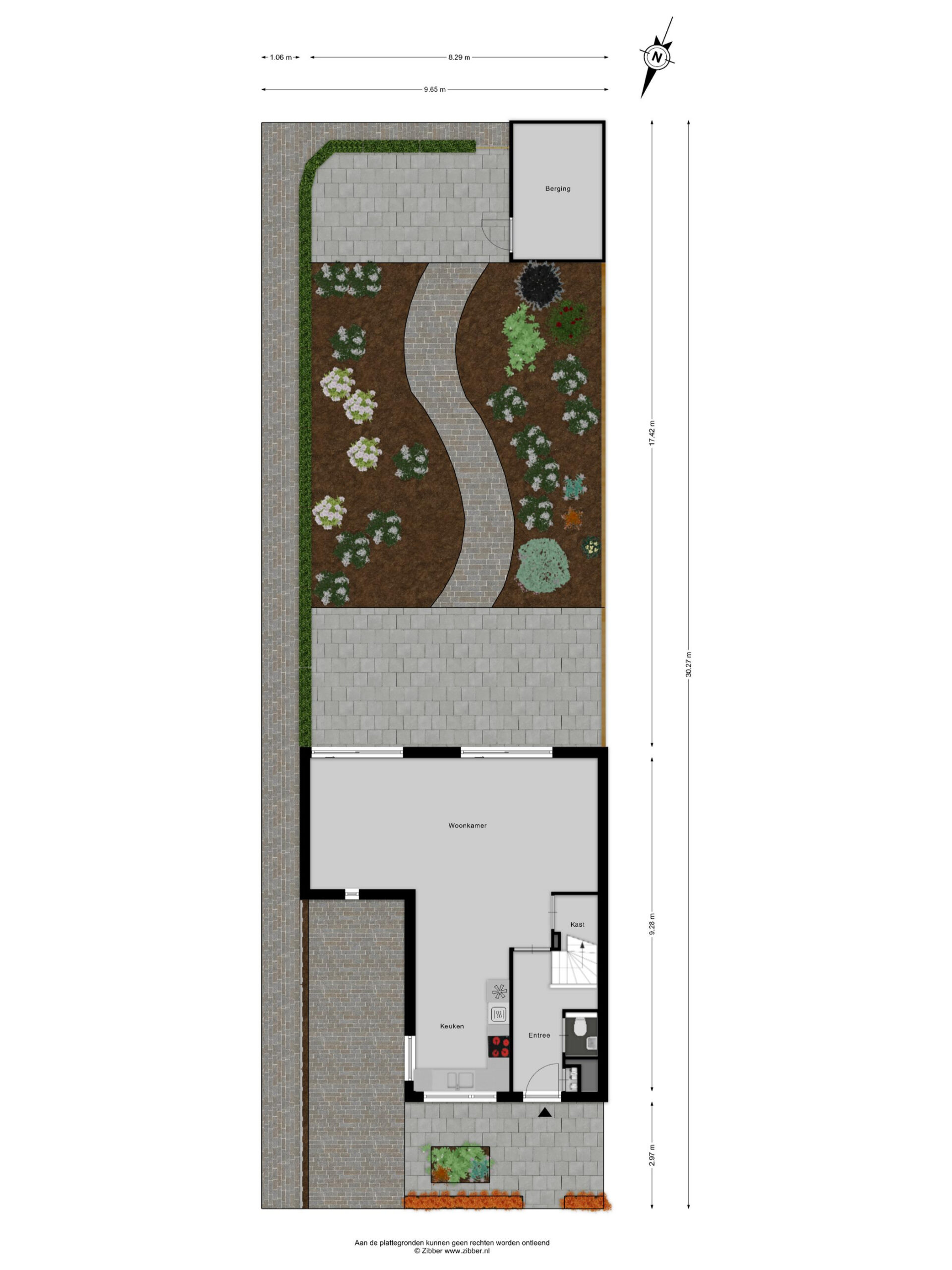 De achtertuin is diep en ligt op het zuiden, waardoor je hier vrijwel de hele dag van de zon kunt genieten. Achterin de tuin bevindt zich een praktische berging en via de achterom is de tuin ook gemakkelijk bereikbaar.