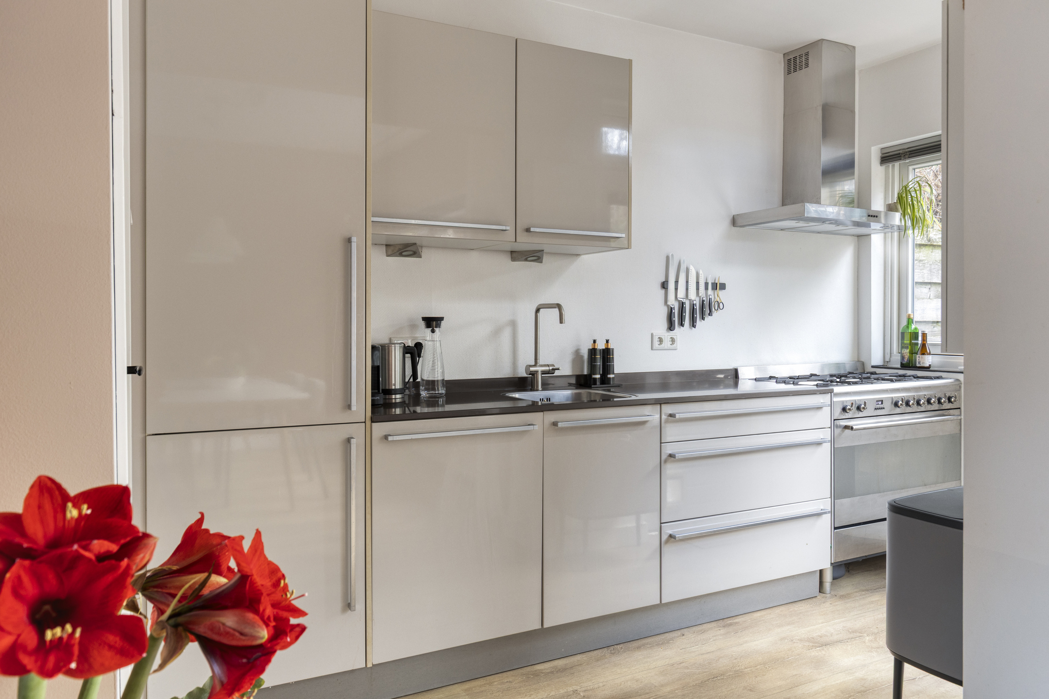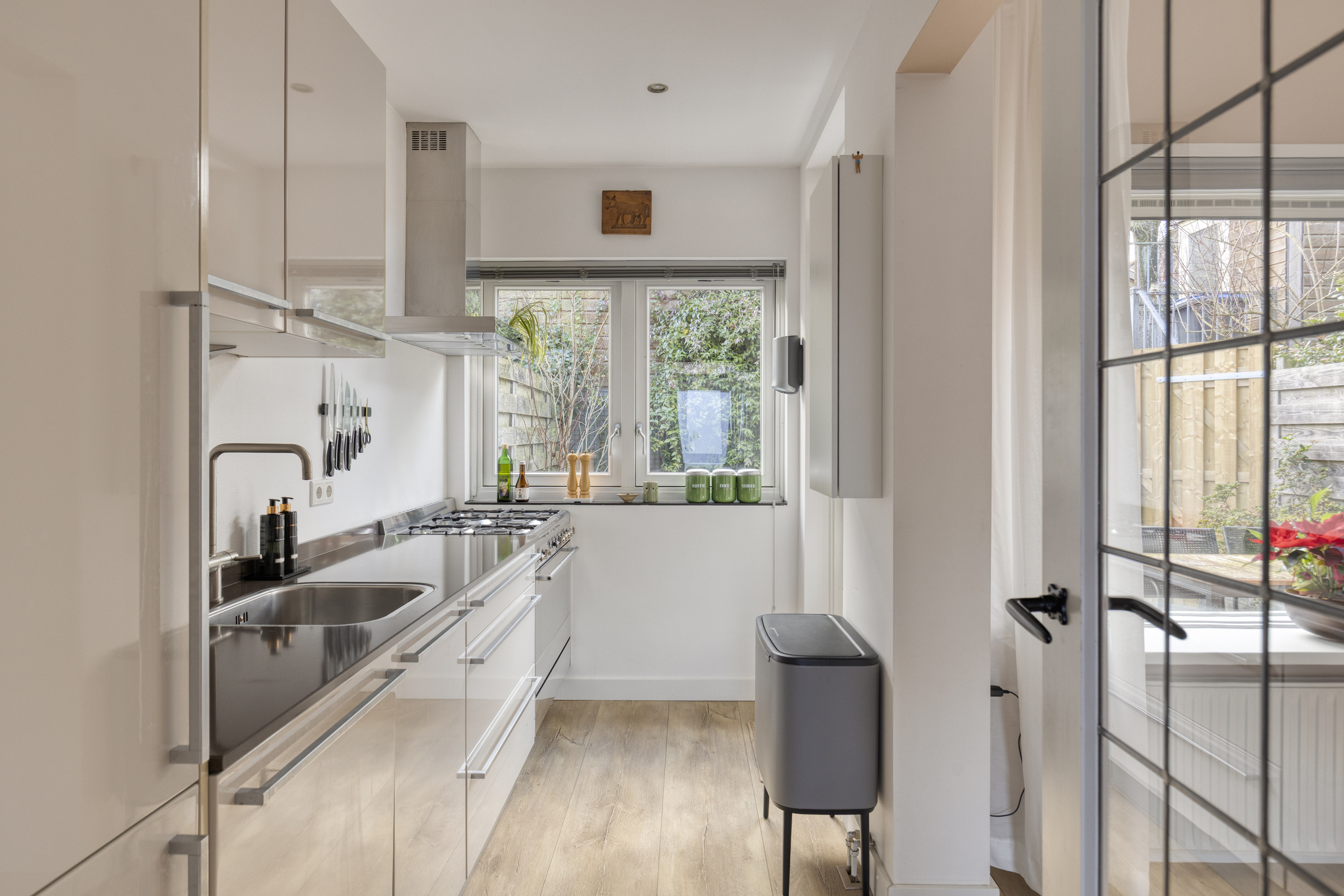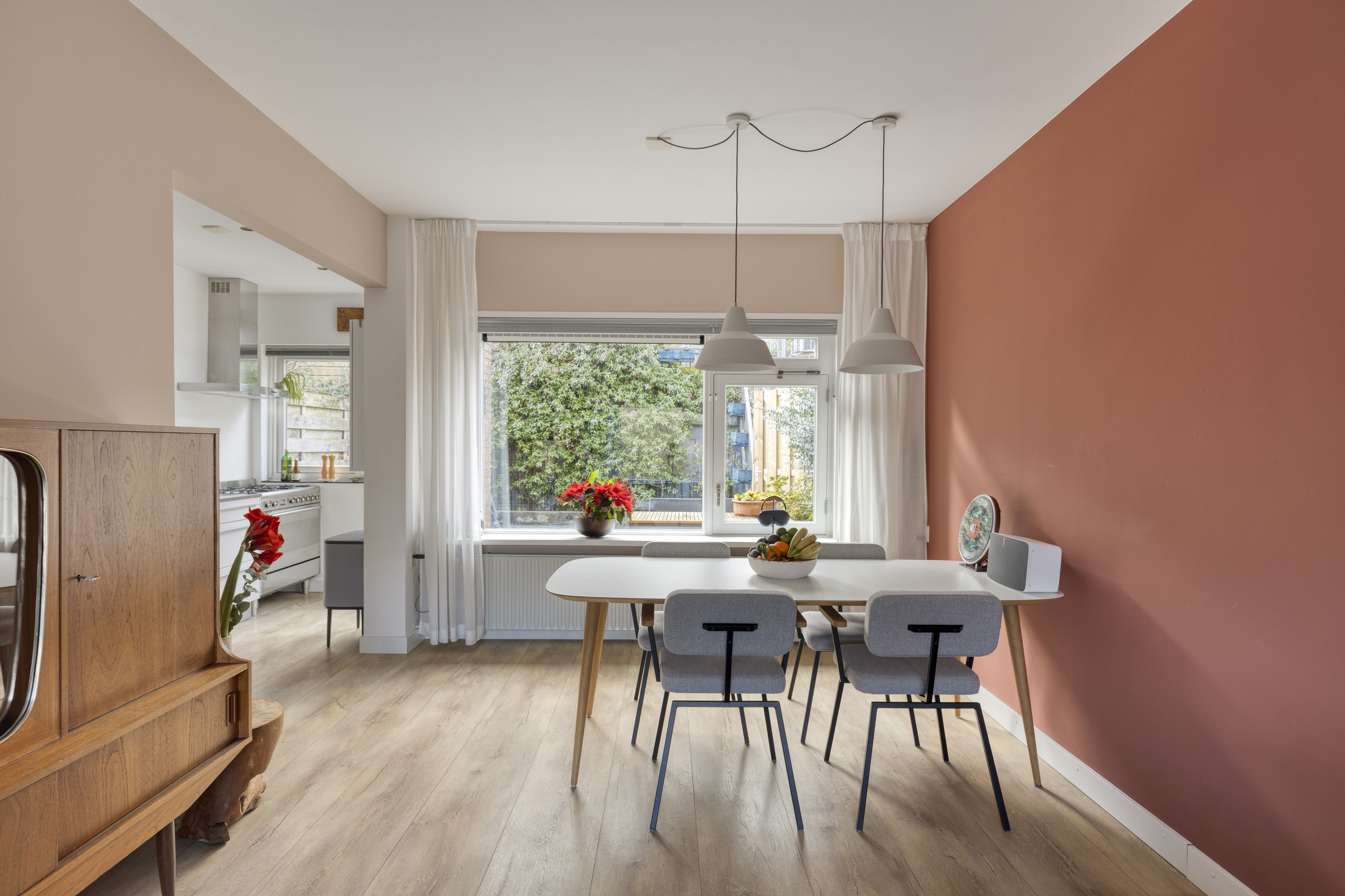 Begane grond: Bij binnenkomst in de hal proeft u direct de fijne sfeer van de woning. De lichte doorzon-woonkamer is een heerlijke verblijfsruimte. Dankzij de grote raampartij aan de voorzijde geniet u van een vrij uitzicht over de straat. De halfopen keuken is modern uitgevoerd in een praktische opstelling. Voor de kookliefhebber is er een robuust gasfornuis aanwezig, ideaal voor het bereiden van uitgebreide maaltijden. Vanuit de keuken stapt u zo de zonnige achtertuin in.