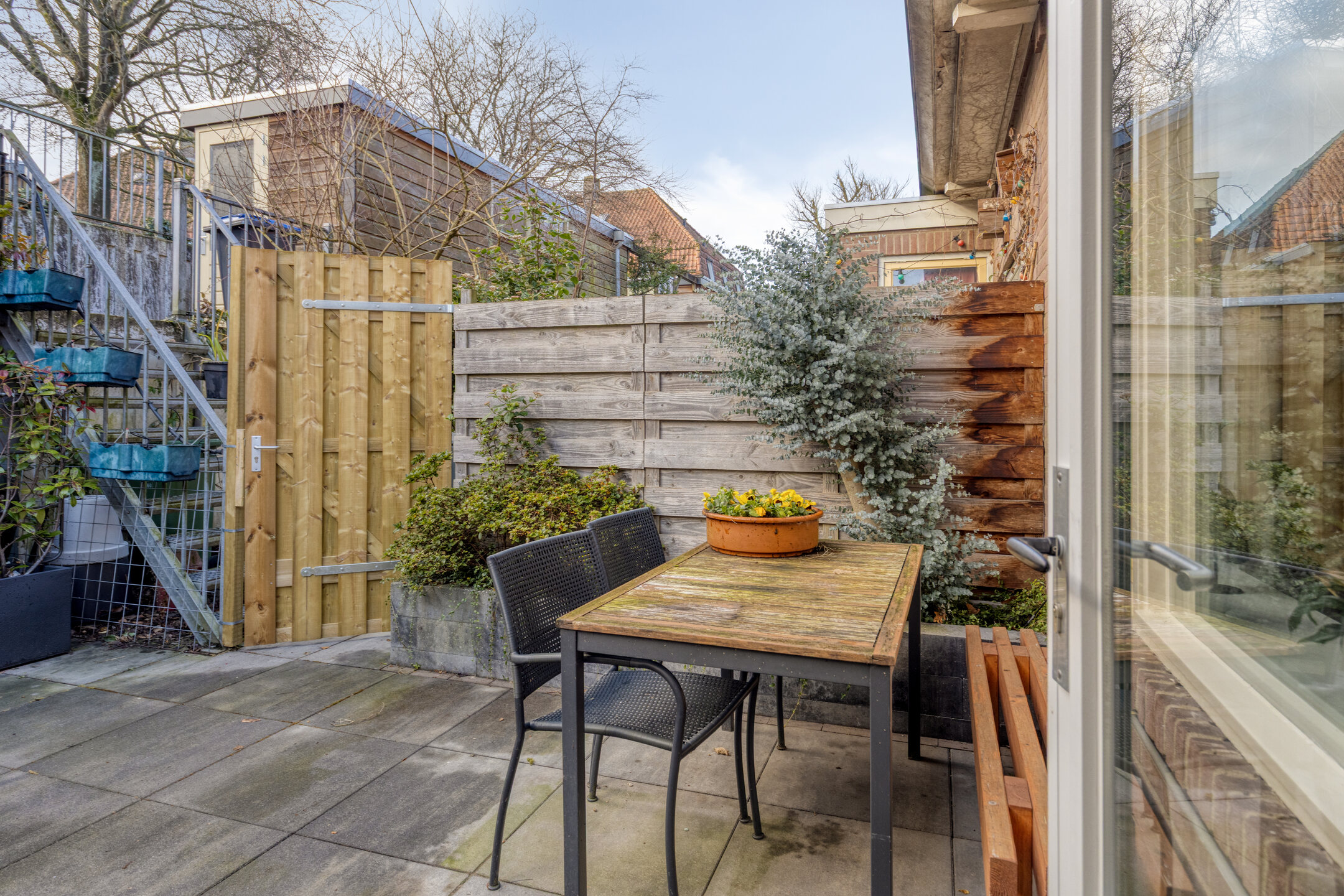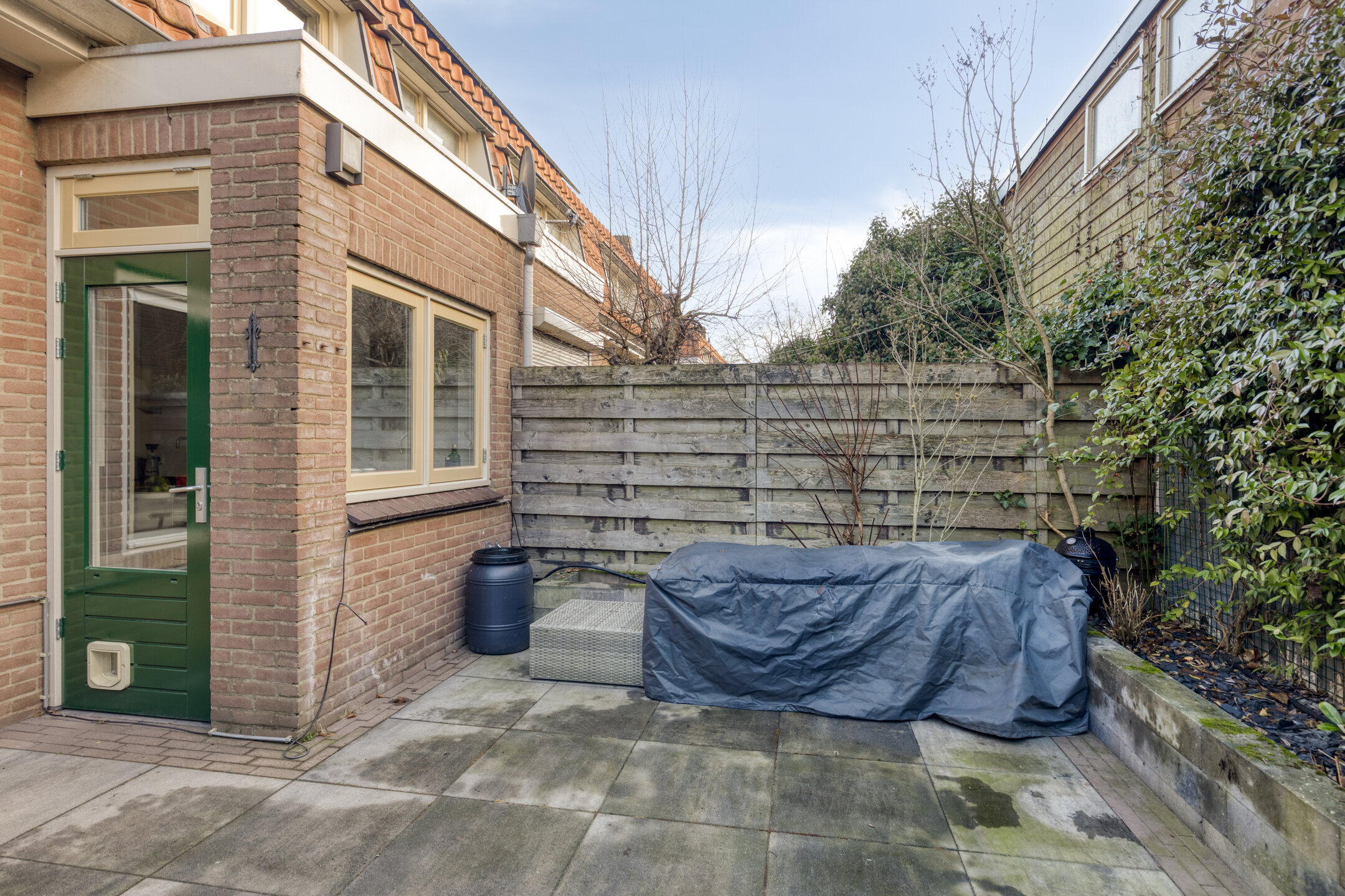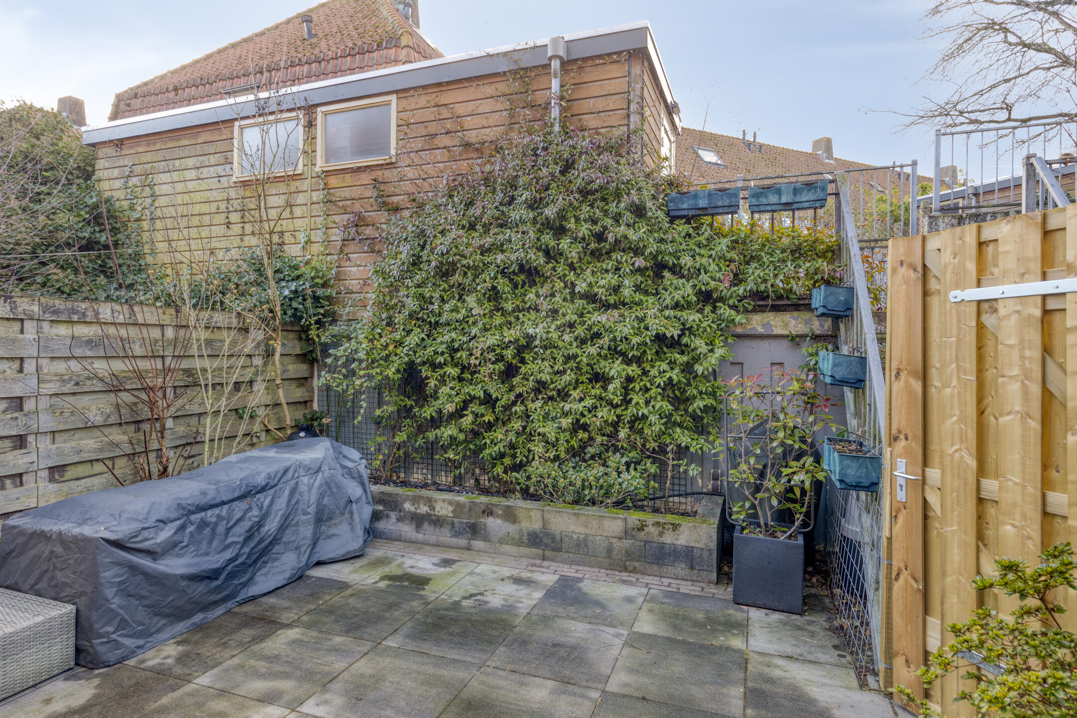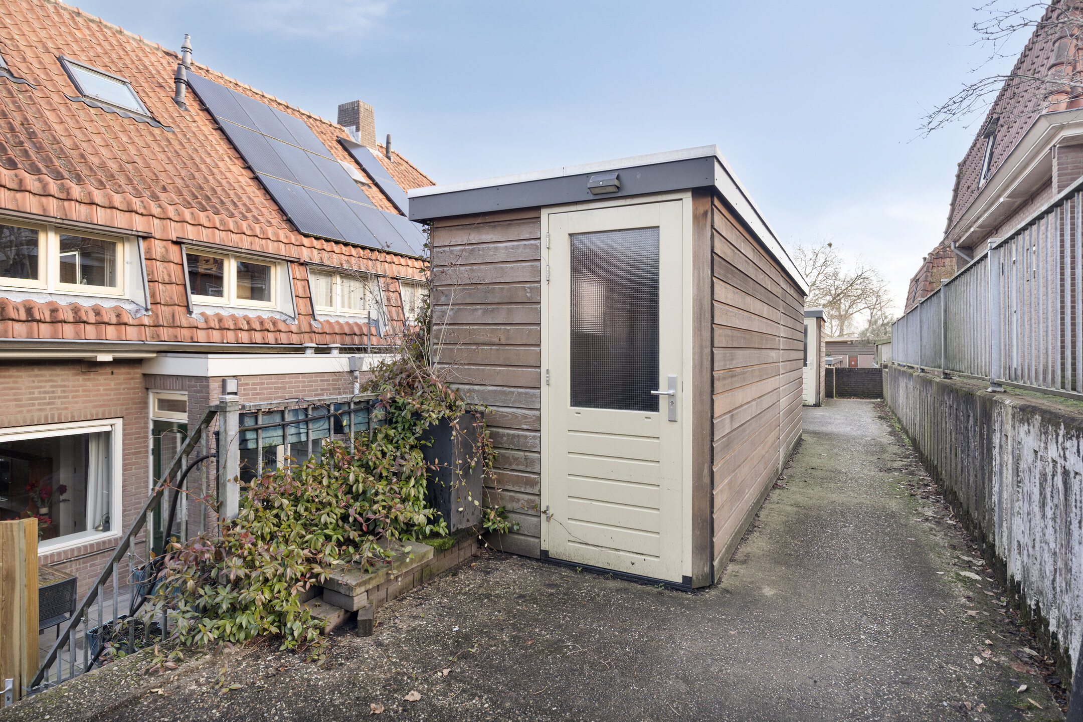 Zonnige achtertuin op het zuiden met eigen achterom;